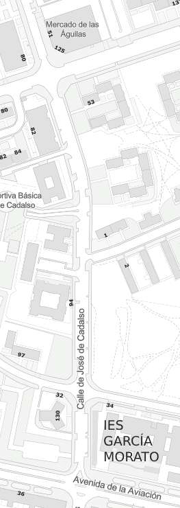 - Aparcamientos en línea en los laterales de la calle José de Cadalso entre Rafael Finat y Avda. de las Águilas permitiendo un ensanchamiento de la acera.